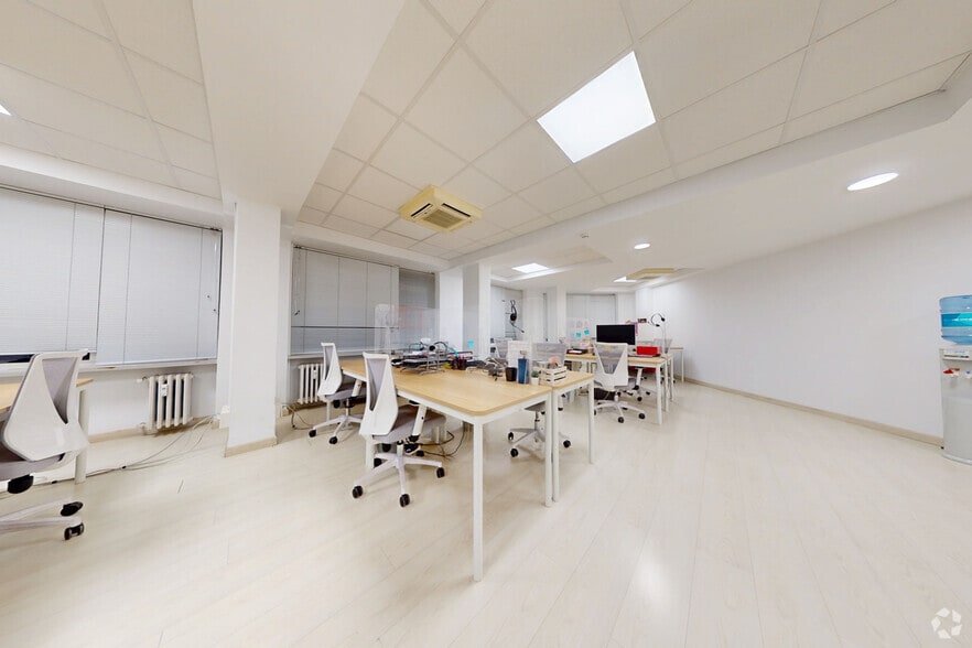 Con una superficie de 355 m², esta oficina ofrece una distribución versátil que incluye despachos privados, amplias zonas de trabajo diáfanas y aseos, permitiendo adaptarse a diferentes modelos de negocio. Está equipada con calefacción central con contador individual y aire acondicionado por casetes, garantizando confort y eficiencia energética.