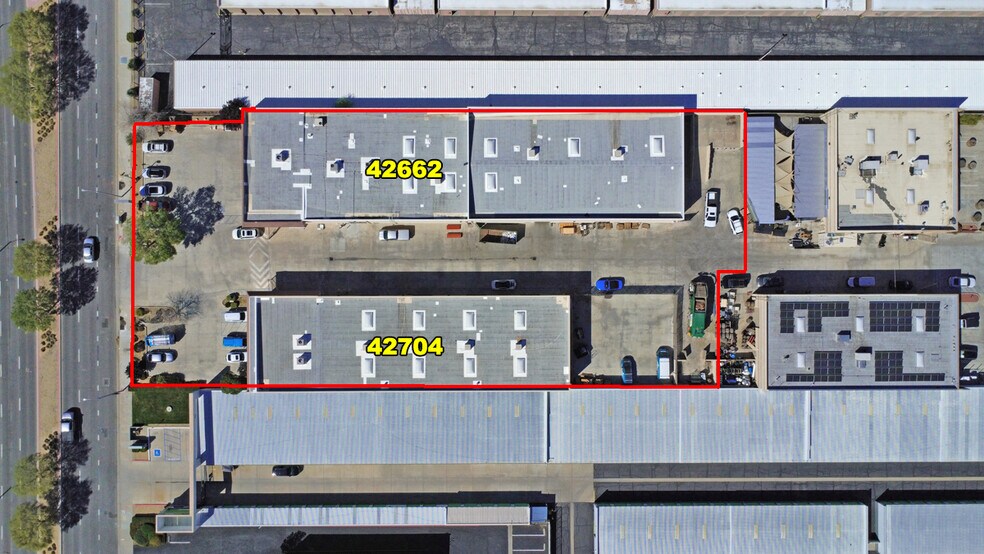 2-building portfolio, APN 3128-009-109 & 3128-009-110.42662 and 42704 10th St West. 42704 is 16,000+/-sf with block construction featuring a spacious front showroom and office area served with HVAC along with some storge in the back along with an attached 8,000+/- sf warehouse building in the rear. All of this on a 31,713+/- sf lot that includes detached loading dock in the back! 42662 is a 9,982+/- sf building of block construction that offers a heated and cooled front showroom and office area and a large warehouse area featuring 5-12’X12’ g/l doors and a small paved and fenced storage yard in the back. This building is currently leased to Arctic Air, a local HVAC sales and service company. Both buildings offer great exposure along 10th St West, the major artery connecting the cities of Lancaster and Palmdale that offers an ADT of 20,200!