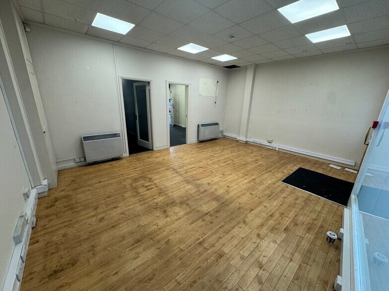 Self-contained ground floor retail premises with large window frontage. The property benefits from suspended ceilings with panel lighting and spot lighting, perimeter trunking, wooden and carpet flooring, electric central heating, ancillary storage, and W/C. There is access to the rear with x1 parking space.