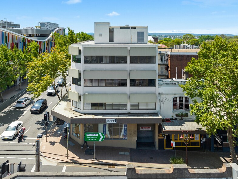 The property is a two-storey commercial building located at 12-14 Falcon Street, Crows Nest, NSW. It occupies a corner position opposite Woolworths and is within close proximity to the new Crows Nest Metro Station. The building includes elevator access, shared bathroom and kitchenette facilities, and offers suites with natural light. The surrounding area features a mix of retail, dining, and professional services.