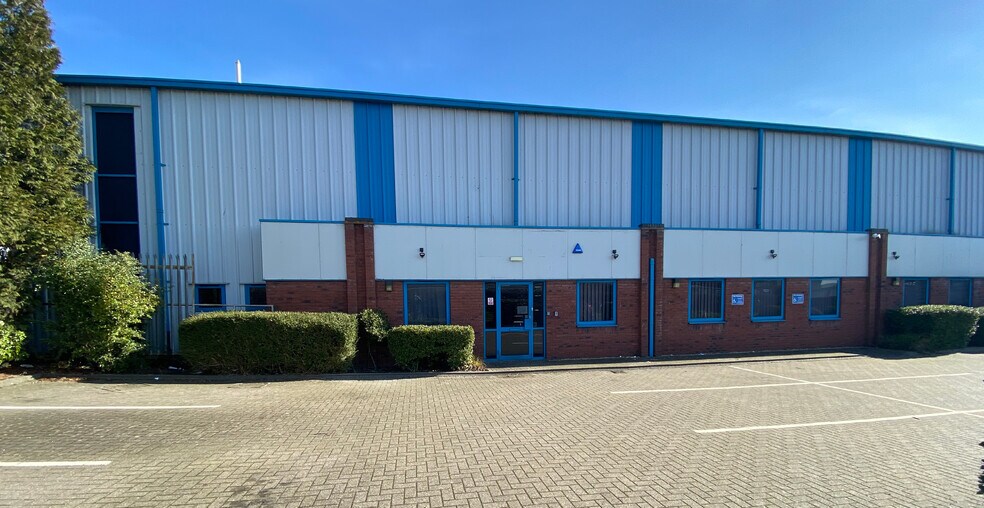 A prominently located end of terrace warehouse of steel portal frame construction with profile steel cladding to both walls and roof. To the front elevation there are single storey offices with facing external brickwork. The offices are accessed by a pedestrian door from the front car park which leads to a reception facility with separate male and female WC facilities, a combination of both open plan and individual offices and meeting rooms and a staff canteen. Door leads through to the warehouse which has a separately accessed roller shutter loading door via the shared goods yard at the rear of the building, and benefits from LED lighting, 3 phase power, electricity, and roller shutter loading door. To the front of the property is an enclosed car park for 12 vehicles. To the rear is a shared security fenced yard and loading area.