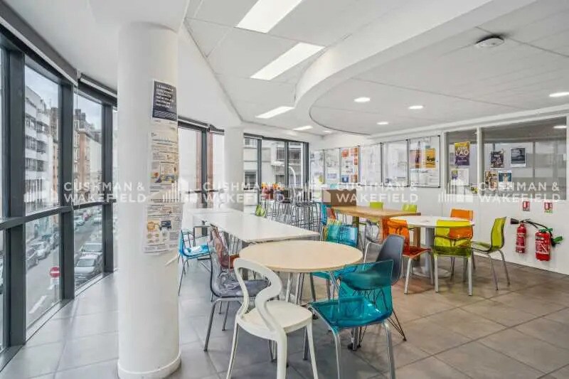 Cet espace situé au 1er étage offre des bureaux cloisonnés en bon état, bénéficiant d’une climatisation et d’un chauffage central pour un confort optimal. Les parties communes sont équipées de sanitaires et l’immeuble dispose d’un ascenseur pour faciliter l’accès. L’aménagement actuel est adapté à des activités tertiaires, avec une moquette au sol et une luminosité naturelle agréable. Des parkings en sous-sol sont disponibles pour compléter cette offre.
