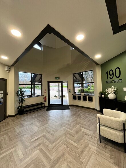 La propiedad está ubicada en Aztec West, que es el principal parque empresarial de Bristol y se beneficia de una variedad de servicios que incluyen un hotel y spa de 4 estrellas, una tienda de conveniencia, quioscos de prensa y la cafetería The Black Sheep. El establecimiento se encuentra justo al lado de la M5, en la intersección 16, con la intersección M4/M5 muy cerca, lo que ofrece fácil acceso a la red nacional de autopistas. El centro de Bristol se encuentra a unos 15 km al sur. El 190 Aztec West es un atractivo edificio que ofrece alojamiento en la planta baja y en la primera planta. El edificio está configurado con una recepción central o núcleo en la parte delantera con baños y duchas, además de un ascensor para pasajeros y escaleras que conducen al primer piso.