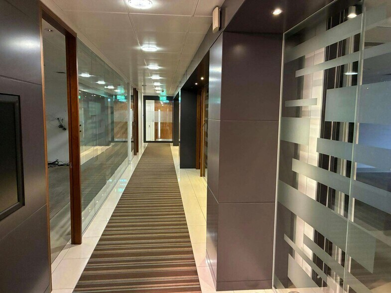 The specification of the offices includes, Air conditioning, Underfloor trunking, Open plan offices with some meeting rooms, Carpeted, Access to communal terraces, On -site car parking, Manned double height reception