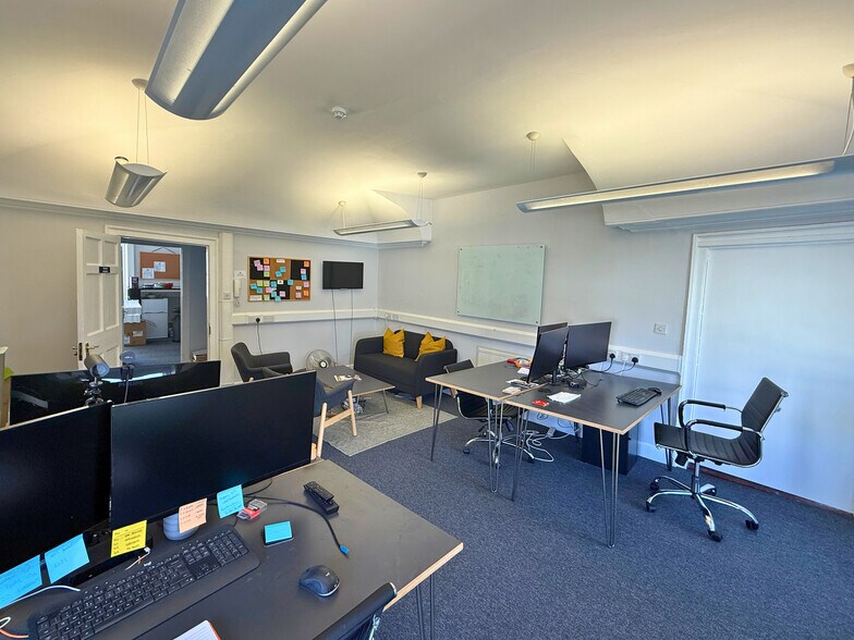 The suite is situated on the third floor and comprises a light and spacious open-plan corner office, with an additional room to the rear suitable for use as a meeting or storage room. The accommodation is finished with carpeted flooring and complementary neutral décor throughout. Modern LED office lighting enhances the generous ceiling height and occupants benefit from access to a shared kitchen and breakout facilities with additional WC amenities. The property is situated in the heart of Clifton Village and occupies a prominent position fronting onto The Mall within the established Clifton Village.