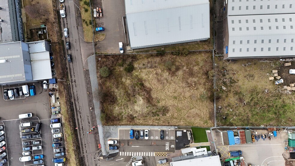 0.49 acres of industrial development land. The site currently comprises unmade ground and is generally slopes down from north to south. At present there are a number of overgrown bushes/trees upon the site and adjacent to the perimeter. The site boundary otherwise comprises steel palisade fencing throughout. The subjects are located on the north side of Baird Avenue, near the junction with Telford Road within Dryburgh Industrial Estate.