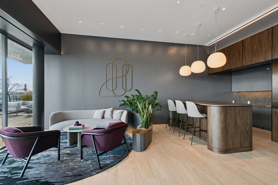 - Zona de servicios de trabajo conjunto con conferencias, cabinas privadas, una despensa y una combinación de asientos