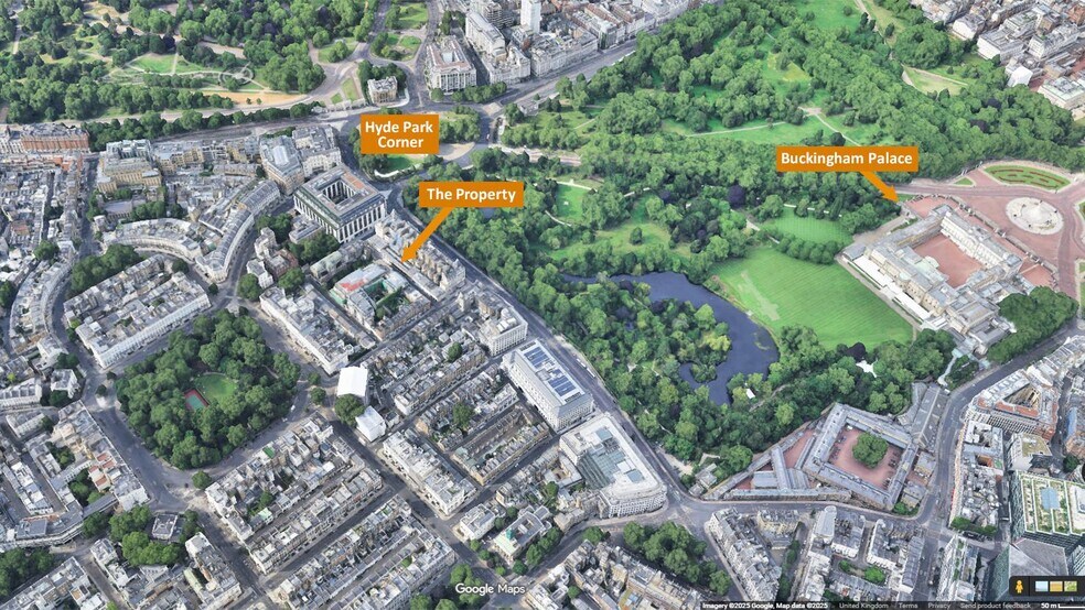 - Less than 50 m from Buckingham Palace Gardens and 250m from Hyde Park Corner