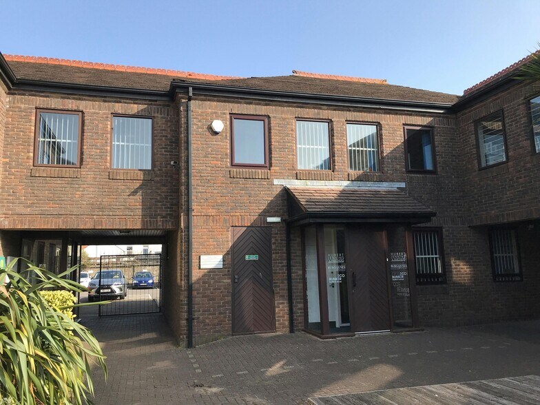 La propiedad comprende un edificio de oficinas de dos pisos, situado dentro de un desarrollo construido especialmente con un patio comunitario y 7 espacios de estacionamiento designados.