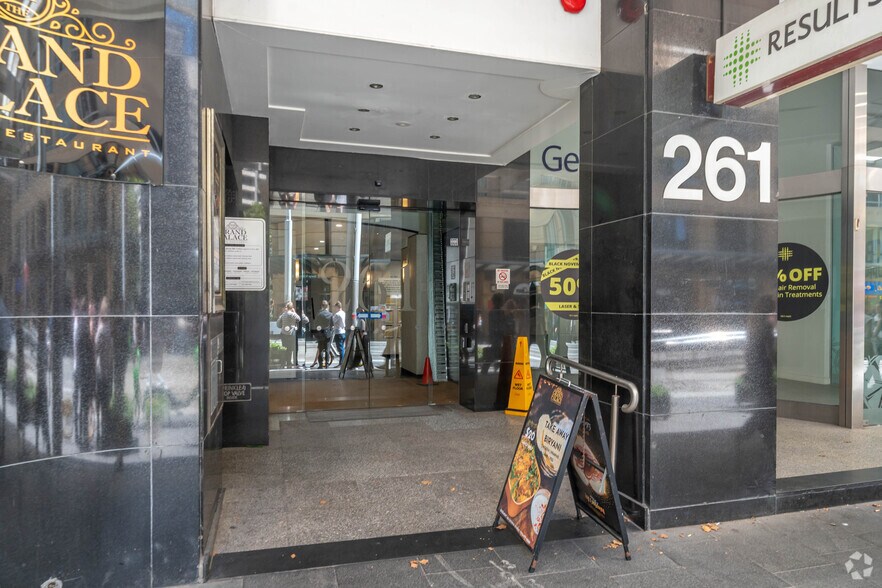 The Telford Trust Building at 261 George Street is a commercial office building located at the intersection of George and Jamison Streets in Sydney’s central business district. The property is currently undergoing upgrades, which include the installation of new lifts and a refurbishment of the main lobby. The building features natural light on three sides and incorporates modern finishes and design elements throughout its office spaces. The location provides convenient access to multiple public transport options, including Wynyard Station, Circular Quay, Martin Place Metro, and the George Street Light Rail. The surrounding area includes major financial institutions, dining venues, and other amenities commonly associated with Sydney’s financial core.
