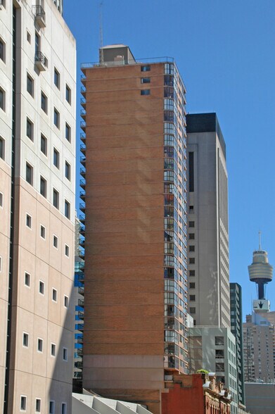 Museum Towers is located at 267 Castlereagh Street within Sydney’s Southern CBD precinct. The property is situated opposite the Downing Centre and near the Family Law Courts. It is within walking distance of Museum Train Station (approximately 220 meters), Gadigal Metro Station (approximately 400 meters), and Central Station (approximately 1.1 kilometers). The building offers onsite amenities including a gym, pool, sauna, squash court, and table tennis facilities. Nearby amenities include World Square retail and dining precinct and a café adjacent to the property