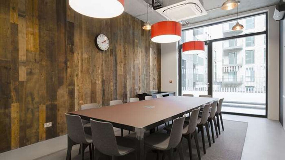 A strikingly modern office building in Ladbroke Grove, offering a purpose-built collection of larger open-plan offices and smaller studios, all framed by chic floor-to-ceiling windows and terraces with views across the West London skyline. The space features beautifully considered design throughout, highlighted by the atrium’s show-stopping glass chandelier.