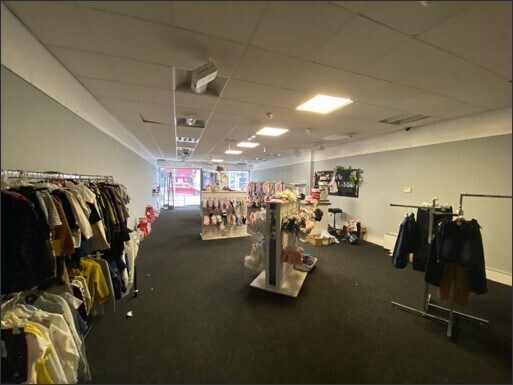 Los temas comprenden la planta baja de un desfile minorista con terrazas intermedias ubicado en un edificio de ladrillo de 3 pisos con techo plano. La tienda tiene una fachada totalmente acristalada con marco metálico y una única puerta de entrada peatonal ligeramente empotrada asegurada por una persiana enrollable eléctrica.