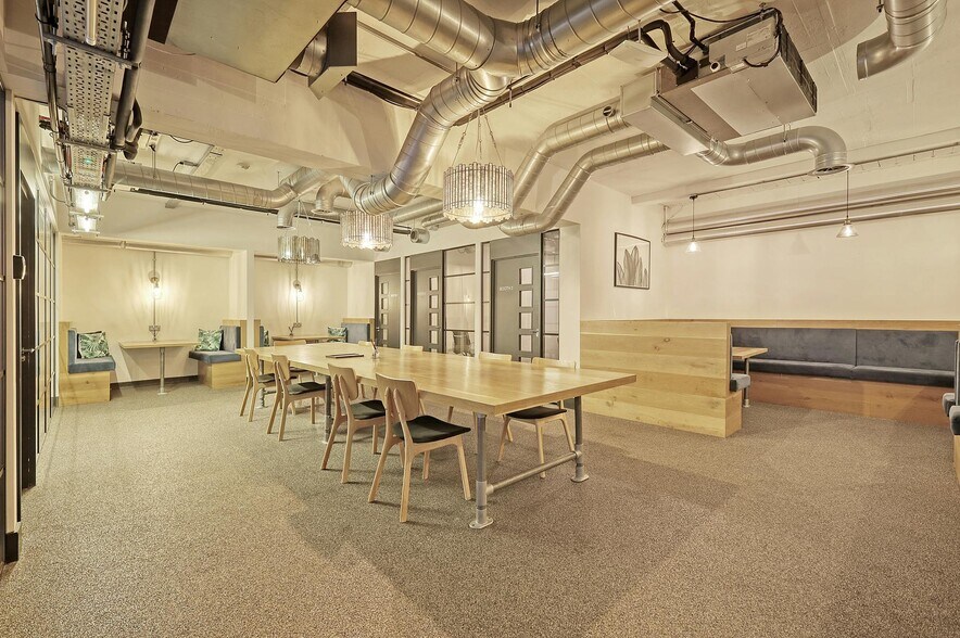 Edificio independiente que ofrece un espacio equipado con áreas de descanso, salas de reuniones, cabinas telefónicas y una impresionante terraza en la azotea con vista a Old Street. Funcionaría bien para un solo ocupante o un operador flexible. Ubicado en Old Street, a cinco minutos a pie de la estación de metro, con una gran cantidad de cafeterías, restaurantes y bares locales, y a tiro de piedra del mercado de alimentos de Whitecross Street.
