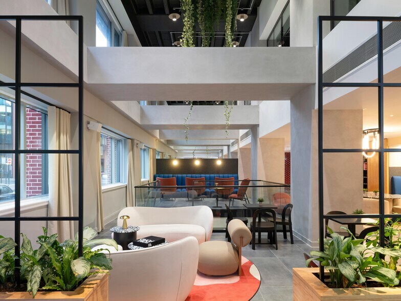 Five Cadogan se ha diseñado para ofrecer a los ocupantes las mejores comodidades in situ de cualquier oficina de Glasgow. La recepción remodelada ofrece 3.500 pies cuadrados de espacio común para reuniones y trabajo. Una abertura recién creada en la planta baja conduce a la zona de bienestar del sótano, que ofrece un gimnasio, un estudio de yoga, una sala de presentaciones y salas de contemplación. Como era de esperar, el sótano tiene duchas y vestuarios para uso de los inquilinos.