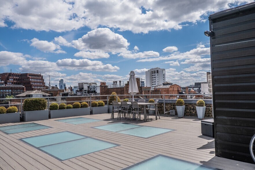 The 4th floor benefits from excellent floor to ceiling heights and fantastic natural light from dual aspect windows and a skylight. The floor is offered in an open plan layout with three meeting rooms. The building benefits from good amenities including a staffed reception, shower and bike storage. There is a large communal roof terrace for tenants in the building to enjoy.