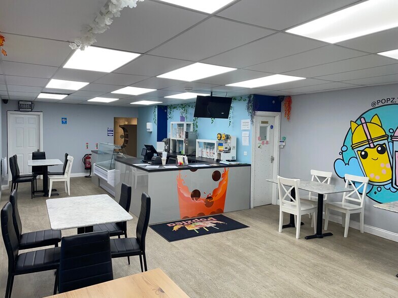 La propiedad consta de un local comercial en la planta baja que se beneficia de una fachada acristalada de ancho completo con una entrada central de doble puerta que conduce a un área de ventas de planta abierta, cuya sección trasera se ha dividido para formar un área de preparación de cocina junto con un baño para clientes. El primer piso está organizado como dos almacenes de oficinas auxiliares, junto con una cocina para el personal y un aseo separado. En la parte trasera de la propiedad hay un área de patio que ofrece dos espacios de estacionamiento privados, junto con un acceso trasero para cargar la mercancía. La propiedad ocupa una posición comercial en el centro de la ciudad frente a Market Street, que forma parte de la principal zona comercial de la ciudad, con otros comercios cercanos, como Santander, Celly's Hairdressers, MyDentist, Fone Revive, Costa Coffee, Vision Express, Kokoro y Milletts.