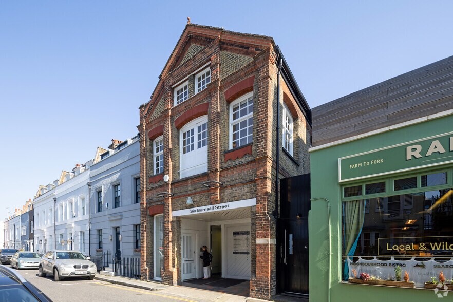Located on the ground floor at 6 Burnsall Street, the office benefits from high ceilings, open plan desk area and a kitchenette, providing a good specification for a small office user. The building consists of a number of warehouse style office suites of varying sizes across ground to second floor. A communal courtyard area provides outdoor space and bike storage.