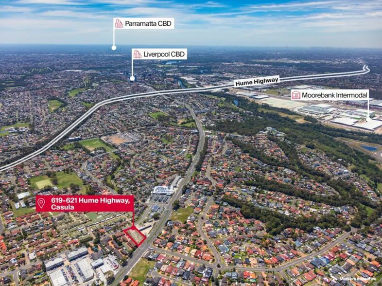 Knight Frank proudly presents an exceptional opportunity to acquire a prime development site at 619-621 Hume Highway, Casula. This high-exposure property spans approximately 2,826 sqm and offers a rare combination of flexibility and visibility in one of Southwest Sydney’s most dynamic growth corridors. Zoned for both commercial and industrial uses, the site provides developers and investors with the versatility to deliver a range of projects tailored to market demand.