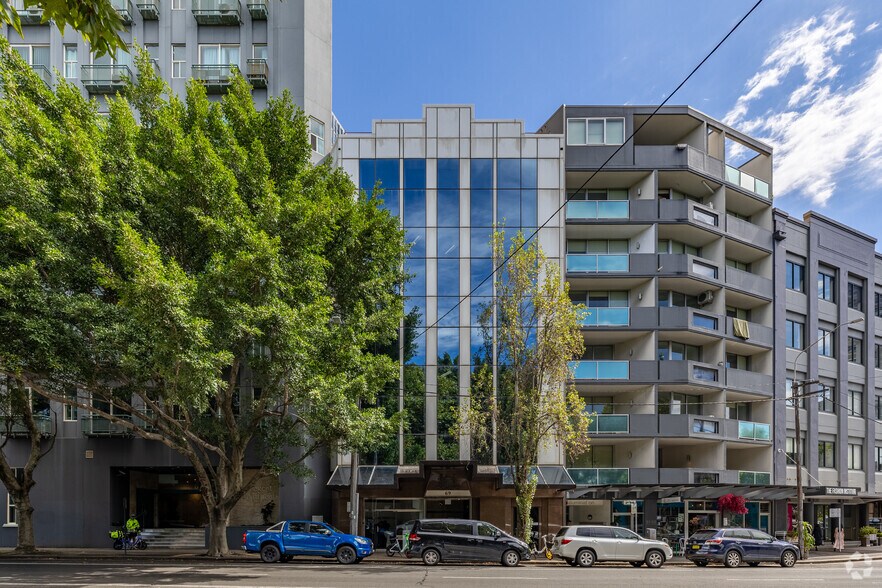 67–69 Regent Street, Chippendale an office building with high stud/vaulted ceilings with skylights, contributing to consistent natural light throughout the upper-level spaces. The property includes wooden/timber flooring, LED lighting, new kitchen facilities, new bathrooms, and ducted air conditioning.The building is positioned on the western side of Regent Street, approximately 50 metres from the intersection of Kensington Street, and is described as being within a short walk to Central Station as well as nearby local destinations including Spice Alley, Central Park and the University of Technology Sydney (UTS).