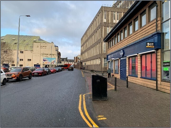 Los sujetos se encuentran en Arthur Street, a unos 100 metros de High Street, entre una variedad de usuarios con licencia, de ocio y minoristas, como The Treehouse, Mecca Bingo, Spar y Vinyl Nightclub. Junto al establecimiento hay un amplio aparcamiento. Ayr es el principal asentamiento del área del Consejo de South Ayrshire, con una población residente de alrededor de 46.800 habitantes. Los sujetos comprenden un local comercial de dos plantas con terraza central, construido en ladrillo y bloque y coronado por un tejado inclinado de tejas.