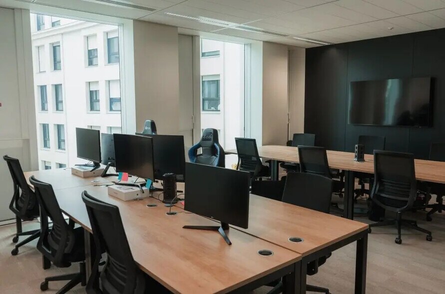 L’ensemble développe 325 m² combinant 130 m² de bureaux privatifs et 195 m² d’espaces communs haut de gamme, formant un cadre de travail moderne, chaleureux et très complet. La partie privative offre des bureaux lumineux, meublés, calmes et immédiatement opérationnels, conçus pour accueillir confortablement une équipe au sein d’un plateau fonctionnel et flexible. Les espaces communs, particulièrement qualitatifs, regroupent une cuisine privative, un lounge, des phone boxes, plusieurs salles de réunion, un espace de restauration équipé de frigos connectés, des douches, des vestiaires et un local vélo sécurisé. Deux grandes terrasses aménagées, dont une privatisable, complètent l’ensemble et apportent un véritable confort extérieur rare pour ce type de surface. Cet espace constitue une solution idéale pour une entreprise recherchant flexibilité, image moderne et services premium dans un environnement de travail clé en main.