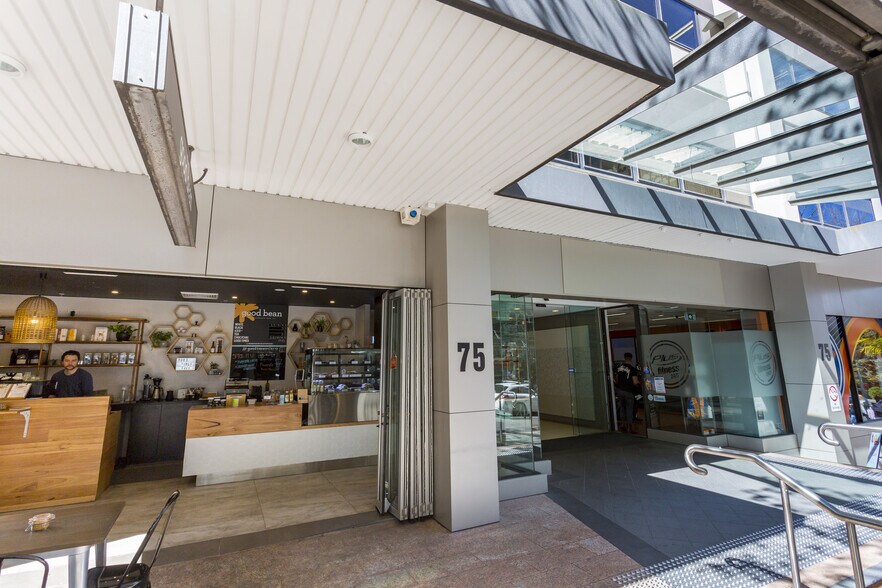 75 Miller Street is a 14-storey office building with two basement parking levels, located on the corner of Miller Street and Gas Lane in North Sydney, NSW. The property underwent a major refurbishment in 2006, which included upgrades to the entrance foyer, office suites, and common areas. Amenities and kitchenettes were added to each floor. The building is situated adjacent to Greenwood Plaza and the Optus Centre and is within walking distance of North Sydney Station and the bus interchange.