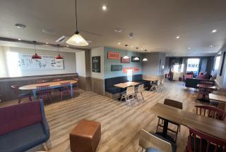 The ground floor comprises an open-plan seating/sales area, a service area, and a WC. The first floor provides customer seating, a WC and storage on the half landing. The property was previously occupied by Costa Coffee and is presented in their standard corporate fit-out. Lighting is a mix of spotlights and pendant lamps. Electric radiators provide heating, and there is air conditioning present. The property has two large customer display windows and a fascia board for signage.