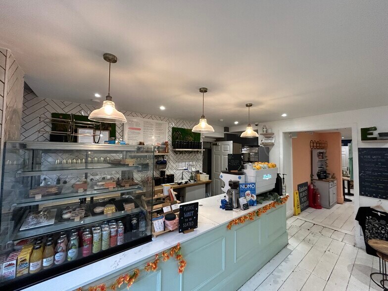La propiedad tiene una zona de estar de planta abierta equipada con una barra de café, asientos adicionales en la parte trasera, una pequeña cocina y un aseo para clientes. Hay un aseo compartido para el personal con Hollis Morgan y otro almacén, ubicado en el primer piso. La propiedad tiene una mezcla de pisos de madera y vinilo, techos y paredes de yeso pintado y ha sido equipada con una combinación de focos colgantes y empotrados, así como aire acondicionado. Entendemos que anteriormente se realizaba una extracción comercial.