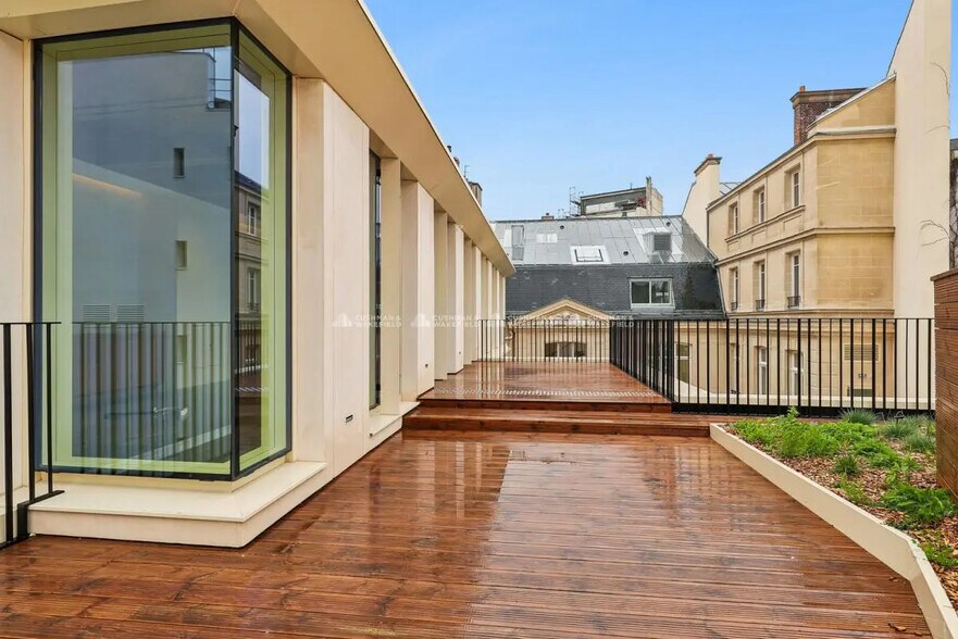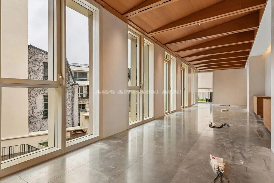Immeuble de standing de style Art Déco en partie rénové, avec un hall d'accueil épuré et ouvert sur un patio végétalisé, espaces de convivialité, plateaux de bureaux modulables, jardins et toitures terrasses. L'immeuble est situé dans une rue passante et commerçante, à proximité directe des transports en commun.