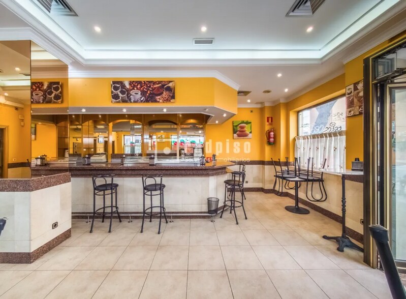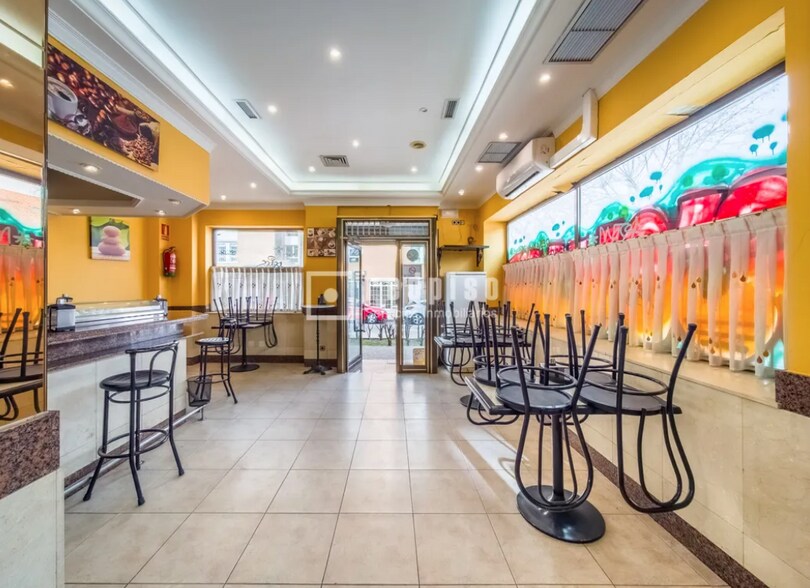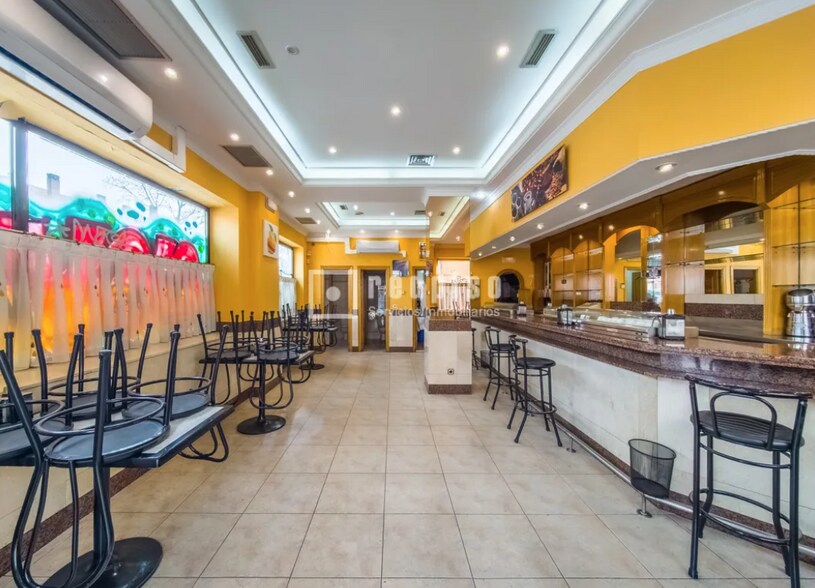 El local cuenta con una zona principal diáfana de atención al público, presidida por una barra de gran tamaño con varios taburetes, con espacio para varias mesas.