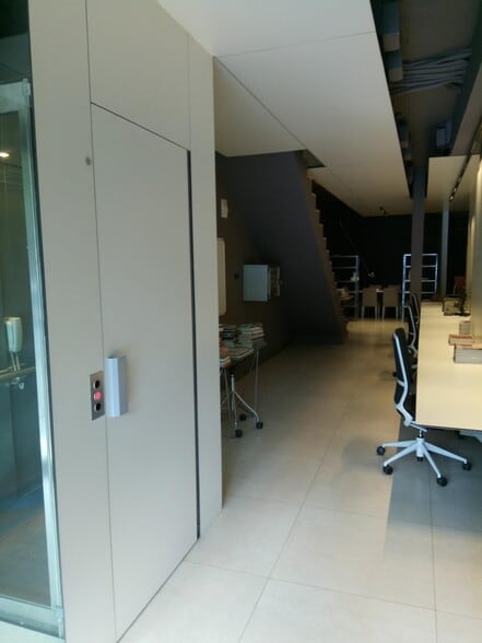 El local se distribuye en tres despachos con mesa larga para varios puestos de trabajo y una habitación independiente en la planta superior.