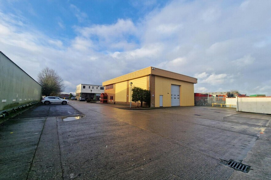 The premises comprise a standalone industrial / warehouse unit with part brick elevations, under a mono-pitched roof. The main warehouse can be accessed from the side of the property via a roller-shutter loading door and a separate pedestrian access.
