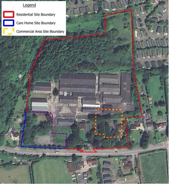 El sitio está listo para venderse como una oportunidad de propiedad absoluta, ya sea en su totalidad o en tres partes separadas, sujeto a una solicitud conjunta de Reserved Matters.