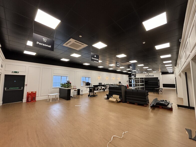 The property comprises a detached single storey warehouse. Internally, the warehouse benefits from a trade counter fit out. There is an electric roller shutter door within the storage section of the property. Within the warehouse there are kitchen and WC facilities. The unit has been fitted out with a black suspended tiled ceiling and LED lighting.