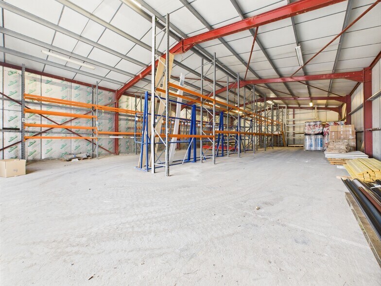 Internally the floorings is concrete with the walls and ceilings being to the inside face of the cladding. Lighting is provide by a number of fluorescent strip fitments. The eaves heigh is approx. 3.61M.