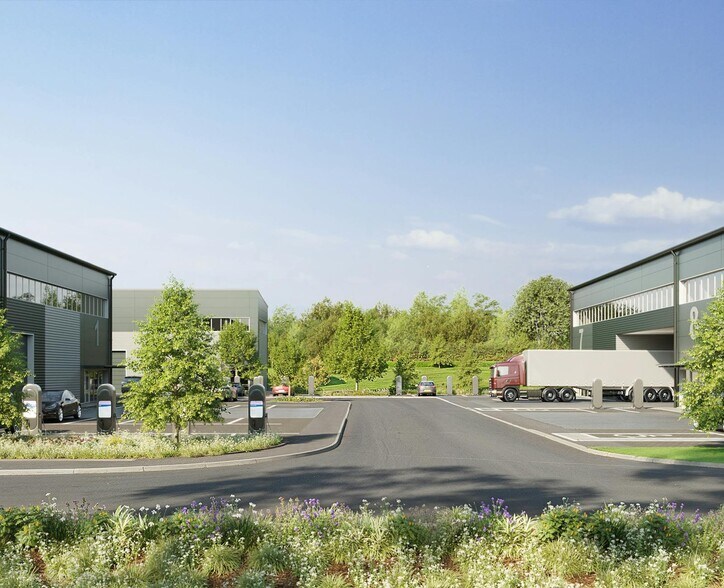Victory Park, Cleeve Road, Leatherhead KT22 7NH is a brand-new Grade A industrial and logistics development comprising 13 high-quality units designed for flexibility and sustainability. Each unit features fully fitted first-floor offices, electric loading doors, and generous yard depths (12–18m). The scheme targets BREEAM Excellent and EPC A+ ratings, incorporating solar PV panels, air source heat pumps, and EV charging for 50% of parking spaces. Clear internal heights range from 6.5m to 8.5m, and all units benefit from 37.5kN/m² floor loading, comfort cooling/heating, and landscaped amenity areas