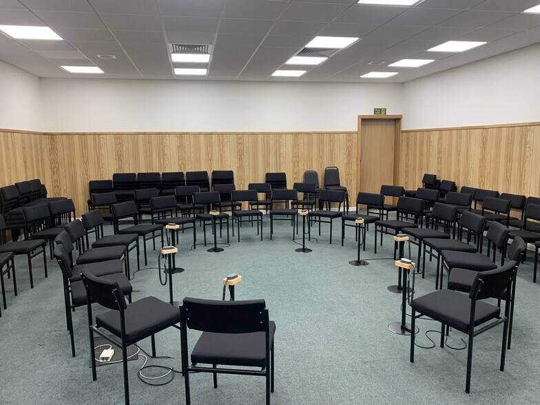 Internamente, el alojamiento ofrece un vestíbulo de entrada con una gran área de planta abierta que actualmente se utiliza para fines congregacionales. También se accede desde el área del vestíbulo a baños separados para hombres y mujeres solteros.