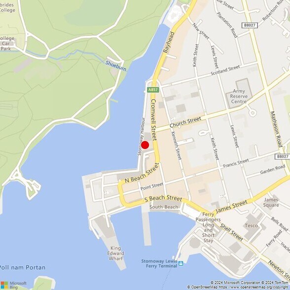 The subjects are located in the centre of town adjacent to Stornoway Harbour on the west side of Cromwell Street (A857) with a pleasant outlook and views across the harbour and beyond. The property benefits from car parking directly adjacent to the building. Occupiers within the building include NFU Mutual, NHS Western Isles, Mast-Ard Studio Ltd, Anderson Associates, Wallace Stone LLP and the Blue Lobster Café.