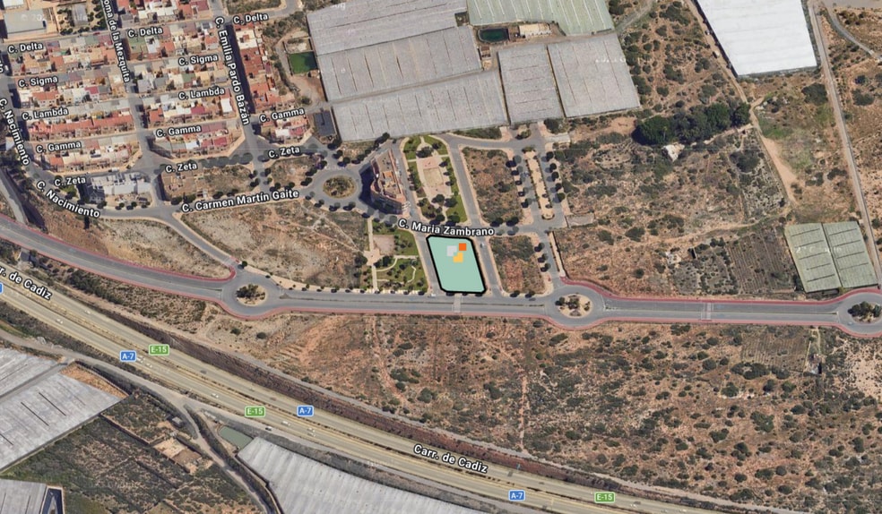 Se trata de un solar de forma rectangular y ubicado al sur de El Ejido, en un entorno de nuevas urbanizaciones de viviendas unifamiliares adosadas y en bloque, próximo a la salida a la autovía del Mediterráneo.
