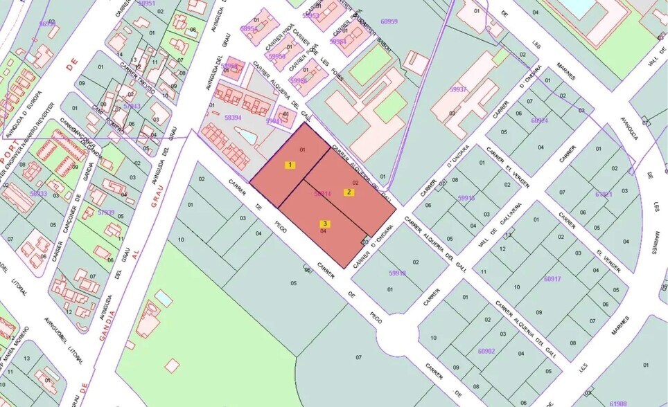 Se trata de tres parcelas para desarrollo residencial de VPO... * FR: 88919 / VPO 1 / Referencia catastral: 5891401YJ4159S0001WZ. * FR: 88921 / VPO 2 / Referencia catastral: 5891402YJ4159S0001AZ. * FR: 88923 / VPO 3 / Referencia catastral: 5891404YJ4159S0001YZ... -Clasificación: Suelo urbano consolidado. -Calificación: Residencial (Viviendas protegidas). -Superficie suelo: 9.680 m2s. -Edificabilidad: 25602.95 m2c. -Hipótesis: Edificio viviendas plurifamiliar en PB+8 y una planta bajo rasante para parking y trasteros... Gandía, en la provincia de Valencia, dispone de una amplia red de servicios médicos con hospital comarcal, centros de salud y oferta privada. Cuenta con una completa infraestructura educativa que abarca desde educación infantil hasta universidad. Su actividad comercial es muy diversificada, con comercio local, grandes superficies y un sector turístico relevante... Está bien comunicada por carretera mediante la N-332 y la AP-7, además de conexión ferroviaria con Valencia... El suelo urbano en Gandía, Valencia, ofrece ventajas por su ubicación estratégica, cercanía a servicios y playas, potencial para desarrollo inmobiliario y crecimiento económico, convirtiéndolo en una inversión atractiva y con gran potencial de valorización.