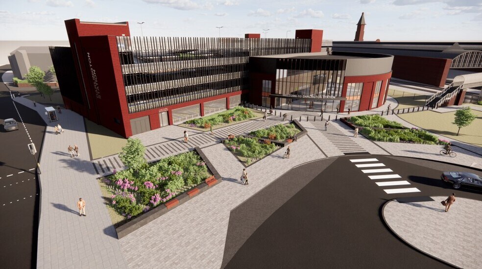 La estación de Darlington se está remodelando con una inversión de 140 millones de libras esterlinas para crear nuevos edificios de estación modernos, con 2 nuevos andenes, nuevas instalaciones para los clientes, incluidas 3 nuevas oportunidades de venta minorista, y un aparcamiento de varios pisos con 653 plazas. Los nuevos edificios se conectarán a la actual estación victoriana catalogada de grado II* a través de una nueva pasarela peatonal. La propiedad está ubicada en los edificios de la estación, frente a la carretera de acceso a la estación. La estación está ubicada cerca de la A167, que ofrece buenas conexiones con la A66 y la A1 con Londres y el norte. La estación de tren de Darlington es utilizada por aproximadamente 2,2 millones pasajeros al año.