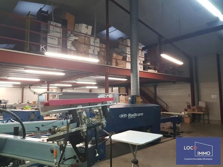 Bureaux, sanitaires, douche. Mezzanine de 150 m² dans l'entrepôt inclus dans la surface totale.