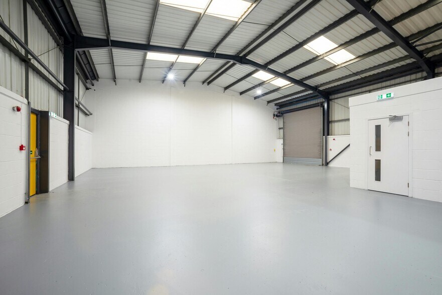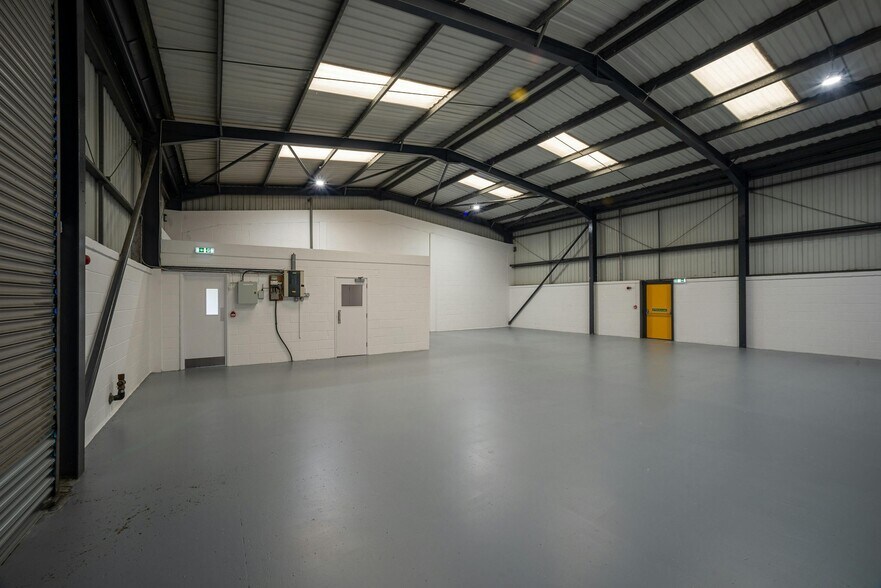 Cada unidad es de construcción moderna y ofrece un almacén de vanos despejados con elevaciones revestidas en parte de ladrillo y chapa perfilada debajo de un techo de chapa metálica de perfil inclinado que incorpora paneles translúcidos.