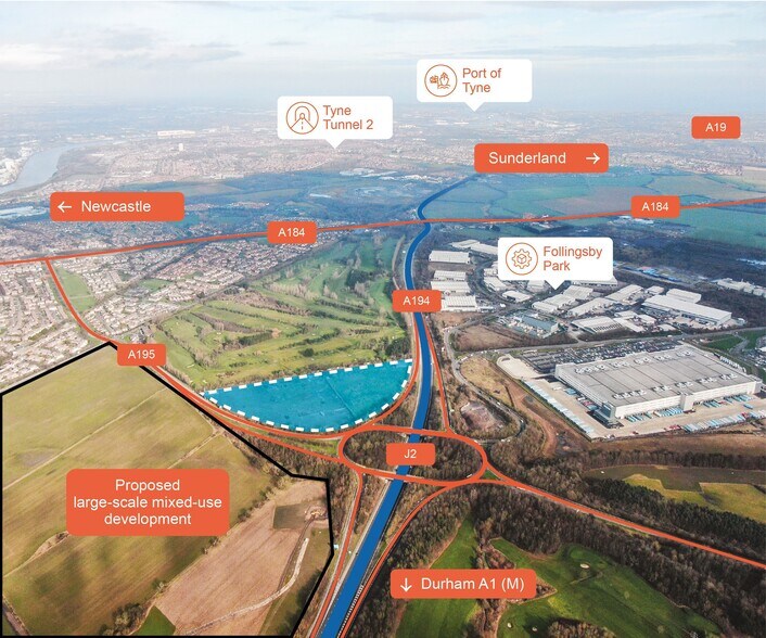 The subjects are 13.1 acres of development land. The site is prominently located on the junction of the 194(M) and A195 in Gateshead. The site is opposite the 110-acre Follingsby Park and Amazon's Fulfilment Centre and Delivery station and sits in a strategic position on the North East's road network with the A194(M) providing direct access to both the A1(M) and A19
