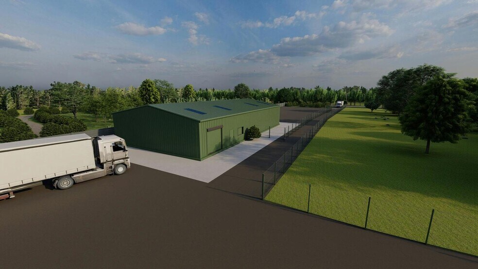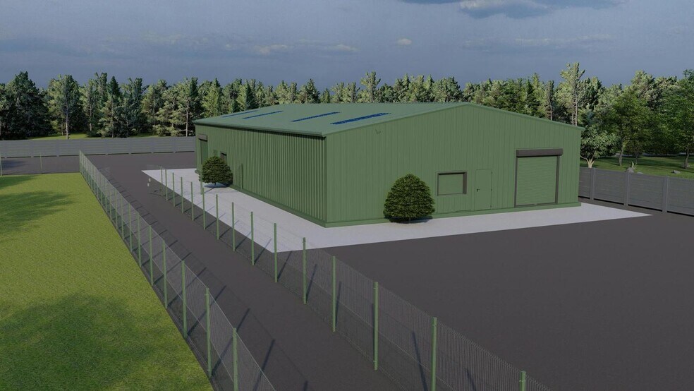 The development will provide two brand new, dark green steel profile cladded, adjoining light warehouse units with their own secure yards. Each unit will have a single loading roller door, two personnel entrances and an enclosed kitchen and WC unit. The warehouses will have rooflights and an eaves height of circa 4.18m. Accommodation The following approximate gross internal floor areas will be provided: Sq Ft Sq M Yard (Acre/Sq M) Unit 1 (East) 2,250 209.03 0.23 / 950 Unit 2 (West) 2,250 209.03 0.19 / 780 Total 4,500 418.06 0.42 / 1,730 Completion is scheduled for early 2026. Planning Full planning permission was granted on 27 February 2024, for the development of a building with B8 Storage & Distribution use. Terms Each unit will be available on a new full repairing and insuring lease for a term to be agreed. Rent upon application.