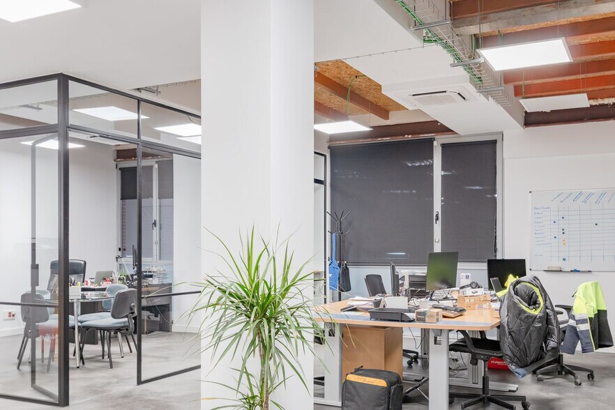 En la planta superior, el almacén en bruto brinda versatilidad para adaptarse a las necesidades operativas de cada negocio, complementado por un patio privativo que añade valor y comodidad. El despacho de dirección, cerrado con acristalamiento, garantiza privacidad sin renunciar a la luminosidad y la conexión visual con el resto del espacio.