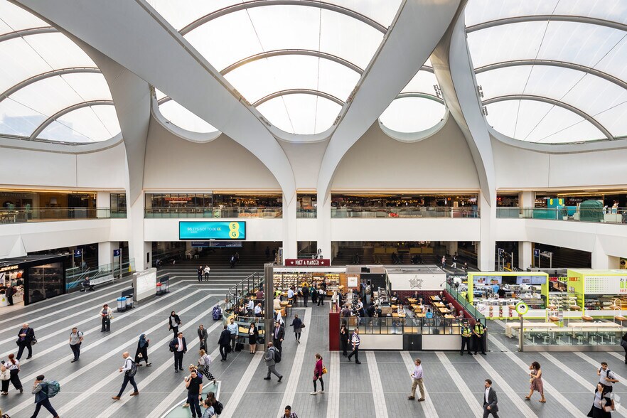 Drum se encuentra en el Grand Central Concourse, por encima del principal centro de transporte de Birmingham, la estación de New Street.