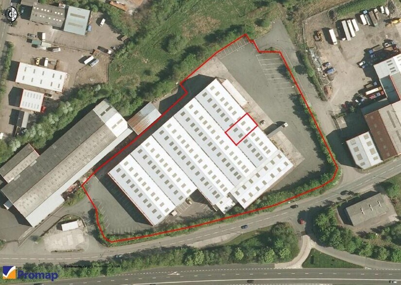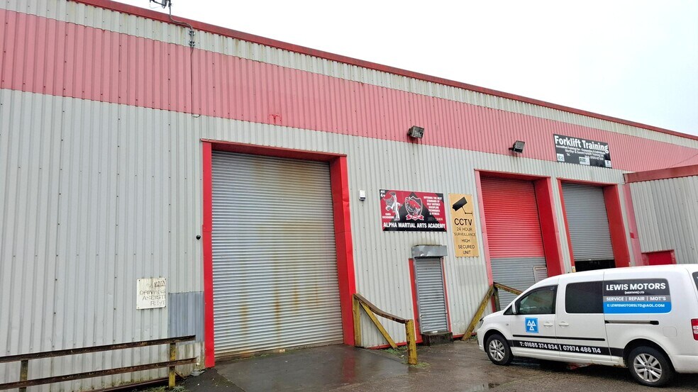 A mid terrace high bay warehouse unit of steel frame construction with a steel truss roof. The warehouse area has an eaves height of circa 7.6m rising to a 11.6m apex height. The unit benefits from a trade counter area, office, toilets and has ample external parking. The available space is located to the rear of the site, situated behind Toolstation and Screwfix. The rear of the unit has been fitted with a tiled suspended ceiling. There is also an electric roller shutter door to the front of the property which measures approximately 5m in height, and 3.5m in width. Pant Industrial Estate is located in Dowlais, Merthyr Tydfil, South Wales, just north of Merthyr Tydfil town centre.
