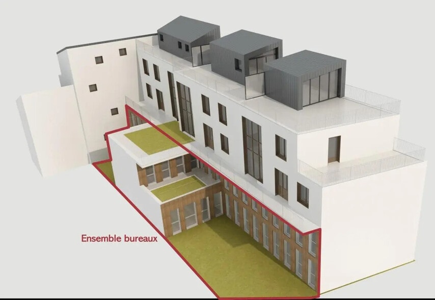 Au pied de la butte Montmartre, nous vous proposons de faire l'acquisition d'un ensemble de bureaux et d'espaces extérieur en fonctionnement indépendant de 702 m² livré brute de béton et proposant une grande flexibilité d'aménagement. Vente en état futur d'achèvement (VEFA) Livraison des plateaux de bureaux neufs et brut de béton Aménagement flexible 108 m² de surfaces extérieures Terrasse au 1er étage - 19 m² Jardin privatif - 65 m² Patio - 24 m² Local à vélo Local technique et CTA Possibilité d'installer un système de climatisation Surface RDC : 0 m² Inclut des jardins d’une surface totale de 108 m²